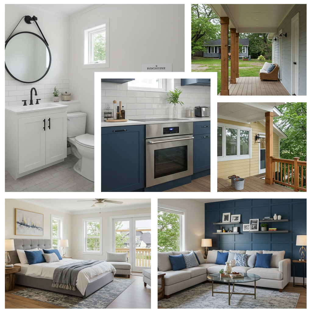 This one is special. This is the first COMPLETE BUILD for Nneka and Calvin. They built every inch of this home in their backyard, even watching the foundation be laid. Ok, maybe not because they were likely running around with a client or chasing after one of their children, but they saw it grow from nothing. Partnering with one of their best friends to build this home and design it – WITHOUT any loans, it is something they are immensely proud of. The blue kitchen and decorative bathroom floor are Nneka’s favorite parts of this property, and the Airbnb deposits are Calvin’s favorite part of the home!